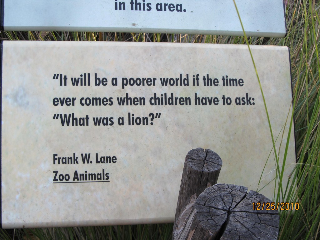 I was touched by the saying on this placard! We must certainly make an effort to save the wildlife!