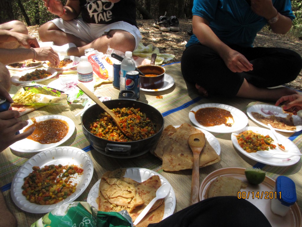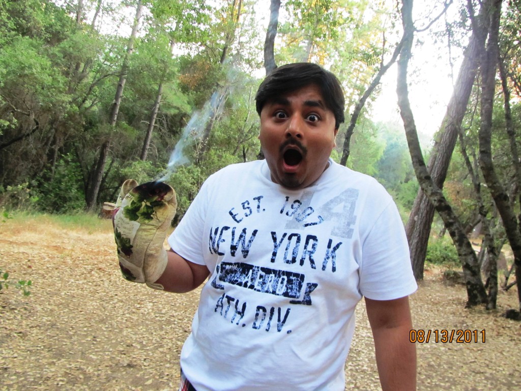 On the way back from Yosemite to our camping site, we had an extempore halt alongside a river. We enjoyed playing in the chilled water coming from the mountains which revived my childhood memories. We were back to our campsite by evening as we planned a barbeque night-Grilled veggie burger with paneer tikka. After the yummilicious dinner we spent the rest of the night playing cards and chatting.