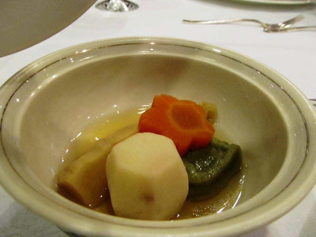 While Maiko played some music , danced and made our evening fun by playing a traditional Japanese game. We enjoyed our vegetarian, seven course French menu. I was so amazed at the variety the chef cooked for us! The meal was so presentable, appetizing and colorful!