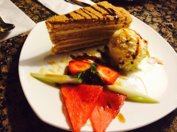 This year when we were visiting our friends in San Diego , one of the evenings we all wanted to experiment and try something different. So we thought of going for Georgian-Russian cuisine at a restaurant named Pomegranate. I instantly fell for the ambiance it was so cozy and different. The walls of the restaurant had funny writings by people who had paid visit at that restaurant some point of time in their life. Since it was our first time trying this cuisine we asked the server for suggestions and went ahead with whatever she said was the best. I really enjoyed the appetizer which was a hollow bread filled with mozzarella and feta cheese. I also enjoyed the Russian tea which was served with cherry syrup. The entree tasted something like a vegetable pilaf. The bread served with dill flavored butter at the beginning was fresh and warm. Overall good food, great ambiance and the best ever company of friends..