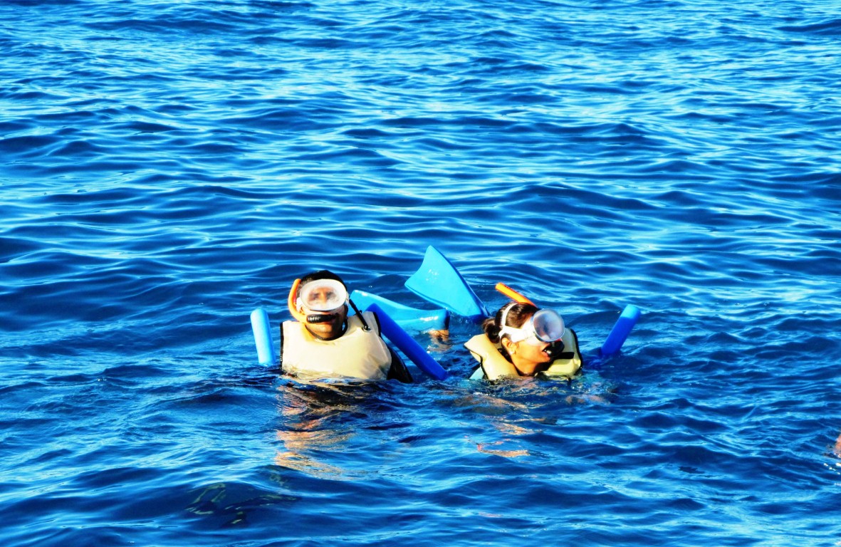 It was a great feeling being admist the ocean and enjoying the variety of fishes underneath the blue waters. It was challenging to breath though- a real fitness test!