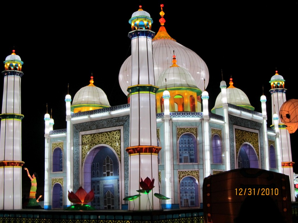 On New Year’s Eve, we decided to visit the Global Winter Wonderland. This was organised at Great America Parking lot in Santa Clara.Global Winter Wonderland displayed around 40 illuminated structures, nearly 50ft tall and 100 ft long. These structures consisted of some of the world’s most iconic landmakrs, themes, traditions.
